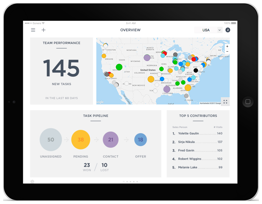 The Rudolf will solve those problems. With The Rudolf, you see instantly, what has been done and what needs to be done next. With The Rudolf you can also gather market insights and do your meeting reports, on the spot, while visiting clients.